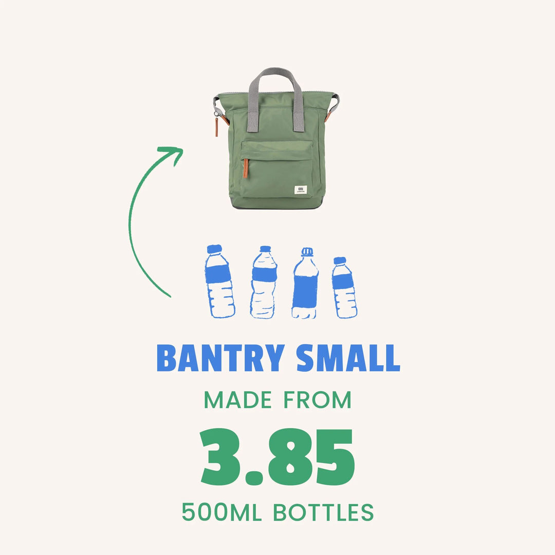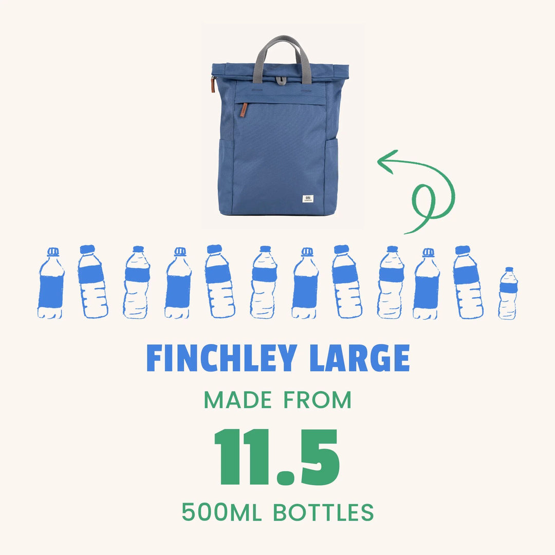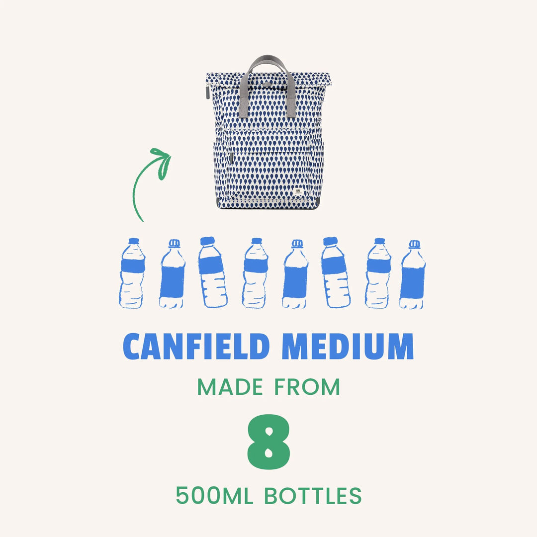 Our recycled fabrics are made from post-consumer plastic bottles - collected, broken into pellets, spun into thread, woven into your bag.